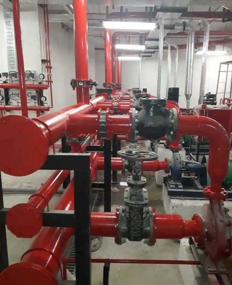 Sanitary and drainage systems Hot & cold water systems Irrigation Systems Plumbing & sanitary fixtures Kitchen and laundry plumbing Pump Stations Automatic sprinkler systems Fire suppression systems Fire extinguishers Fire hose reels Fire hydrant systems Piping Works (Threading & Grooving)